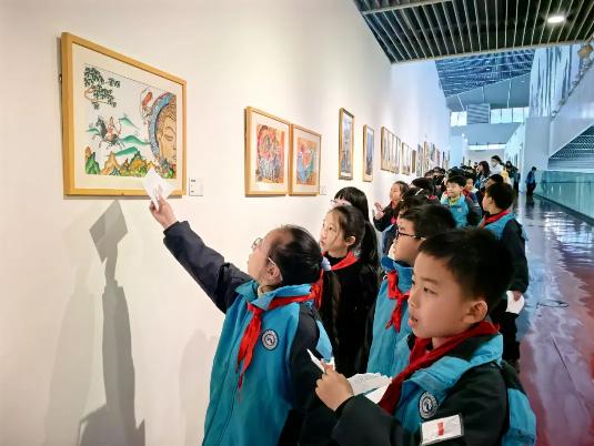 下午,学生们又来到了中华艺术宫。一踏入艺术殿堂,立刻被一幅幅精美的画作所吸引。在讲解员的带领下,他们认真聆听每一幅作品背后的故事,从古代的山水画到现代的油画,从写实的人物肖像到抽象的艺术创作,同学们仿佛穿梭在艺术的时空隧道里,感受着不同风格与流派的魅力。他们时而驻足凝视,时而小声讨论,眼中满是对艺术的好奇与向往。