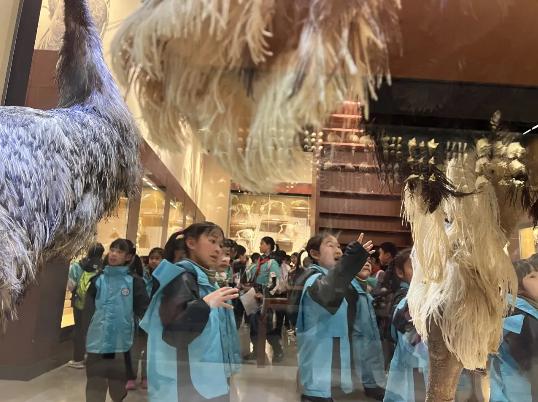 一年级学生走进上海自然博物馆,化身“小小科学家”。在“演化之道”展区,巨大的恐龙模型引得孩子们连连惊叹;步入“生命长河”长廊,从远古生物到现代物种的演变历程以动态形式生动呈现。通过互动装置和3D科普电影,学生们在沉浸式体验中理解了生物多样性,感悟生命的神奇力量。