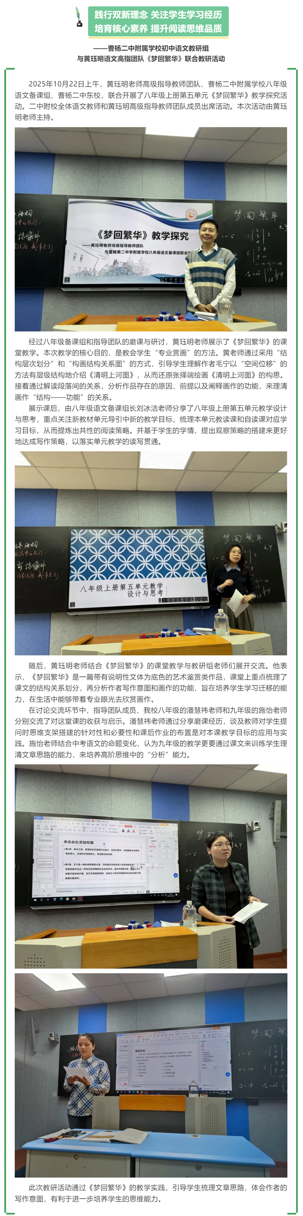 ——曹杨二中附属学校初中语文教研组与黄珏明语文高指团队《梦回繁华》联合教研活动