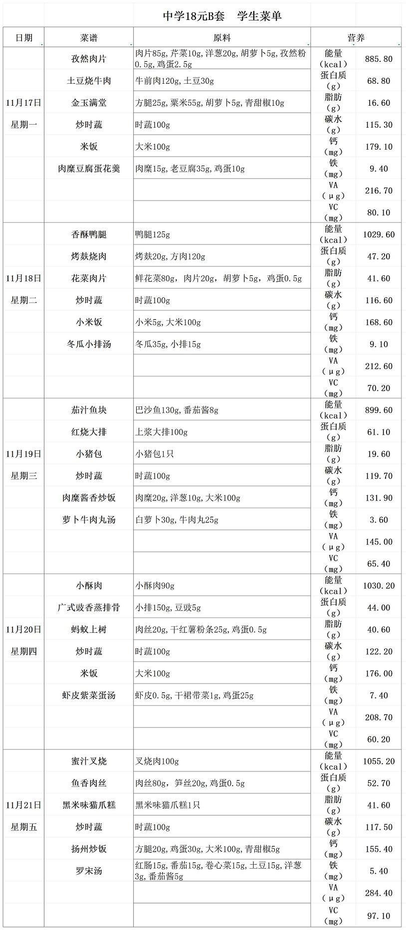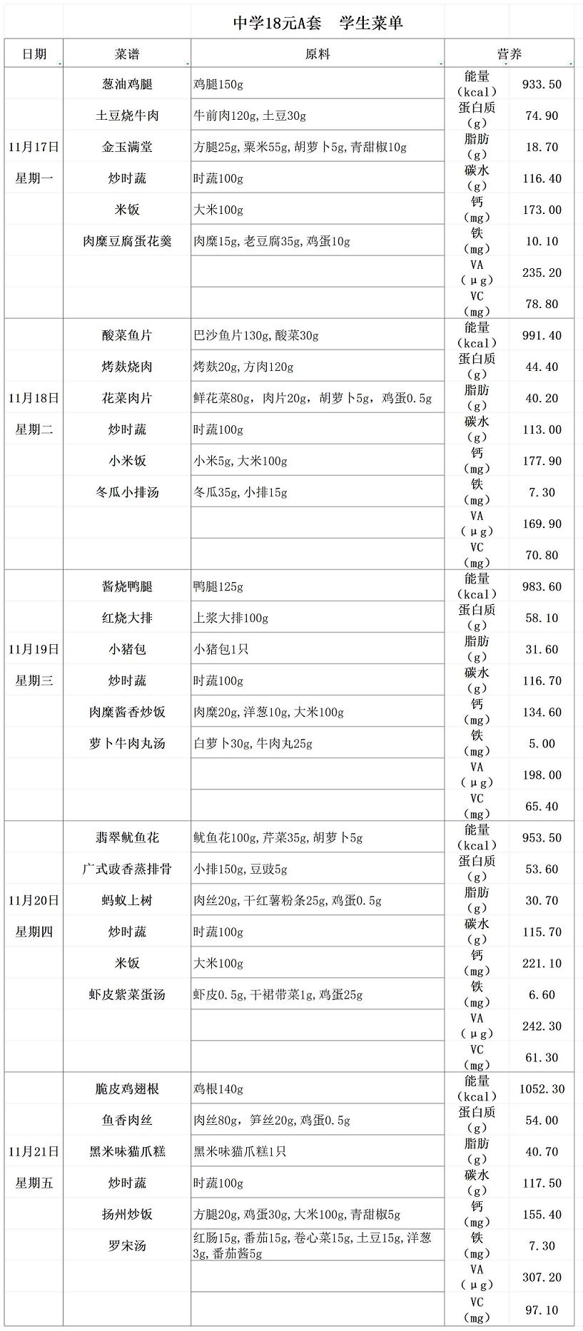 2025学年第二学期第十二周菜单