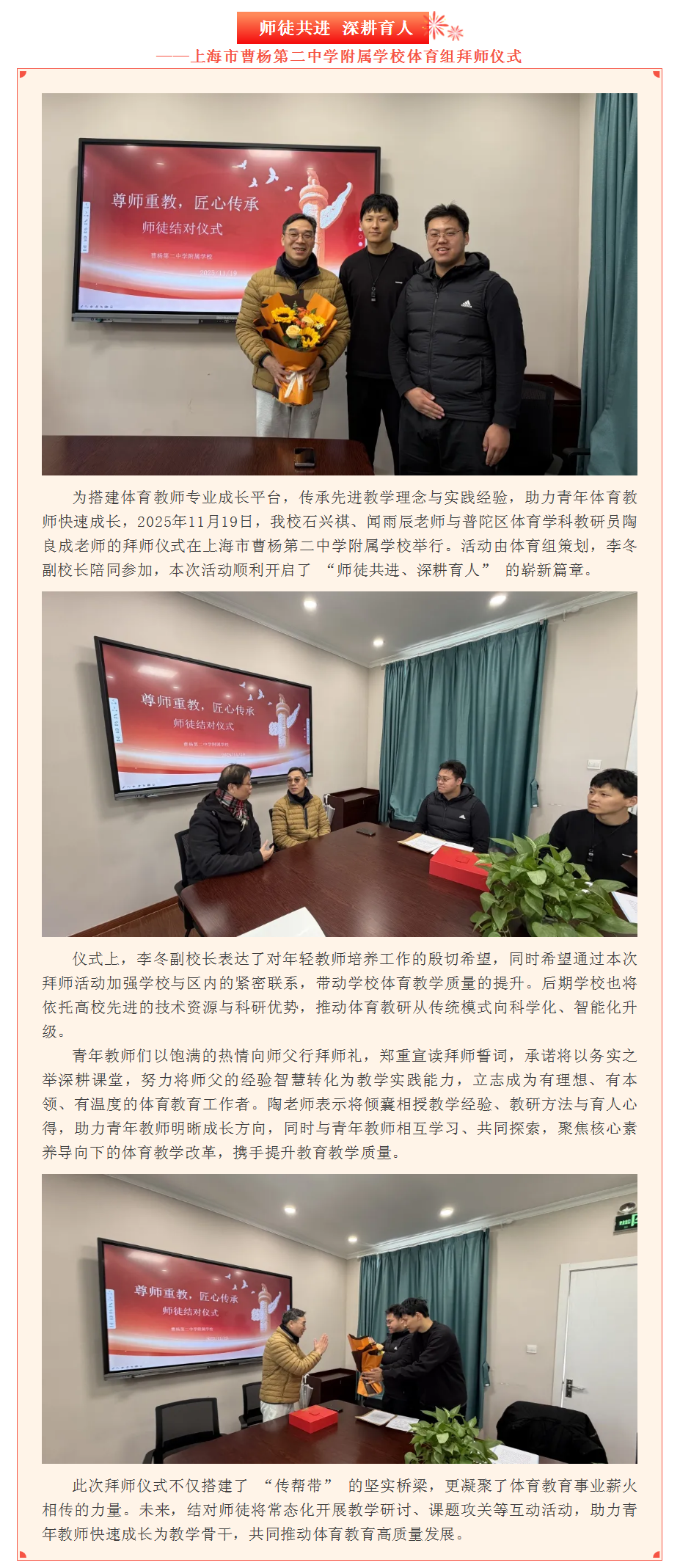 ——上海市曹杨第二中学附属学校体育组拜师仪式
