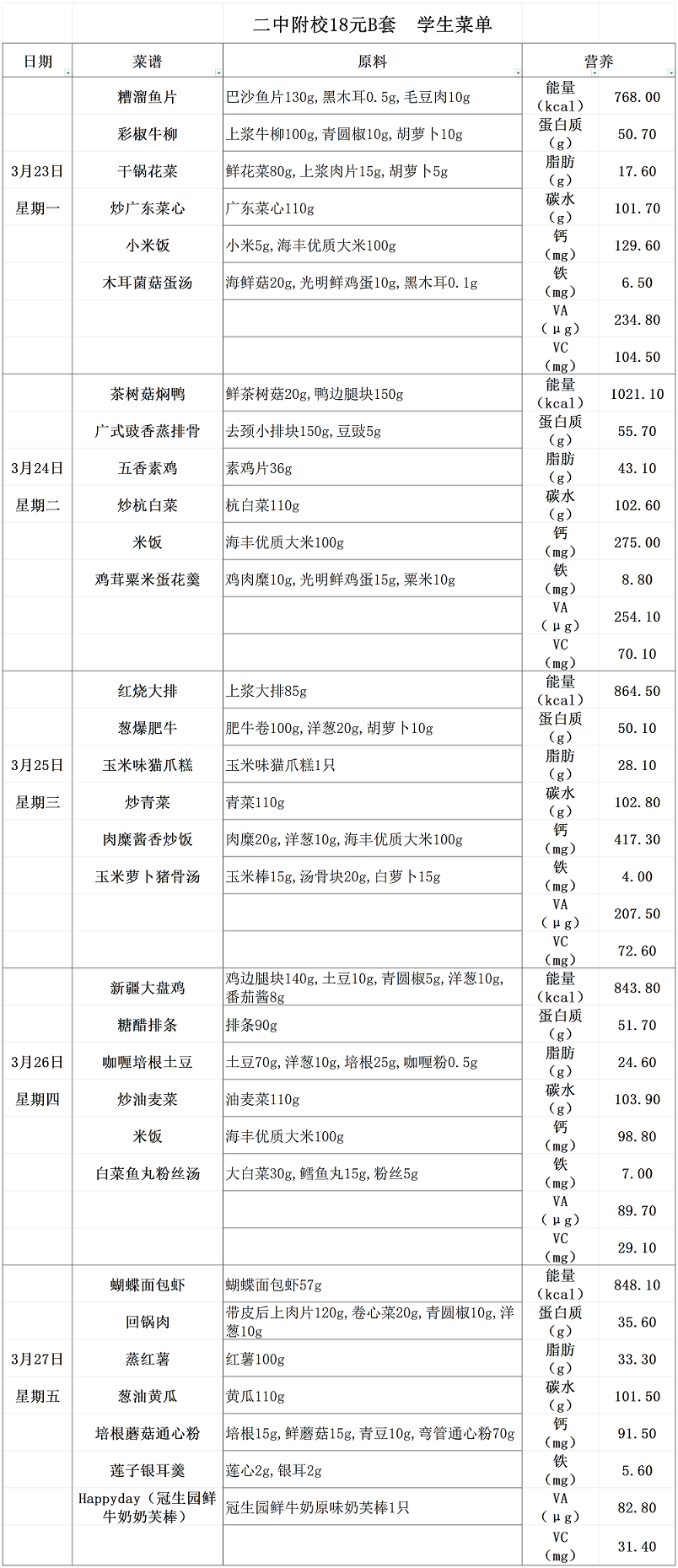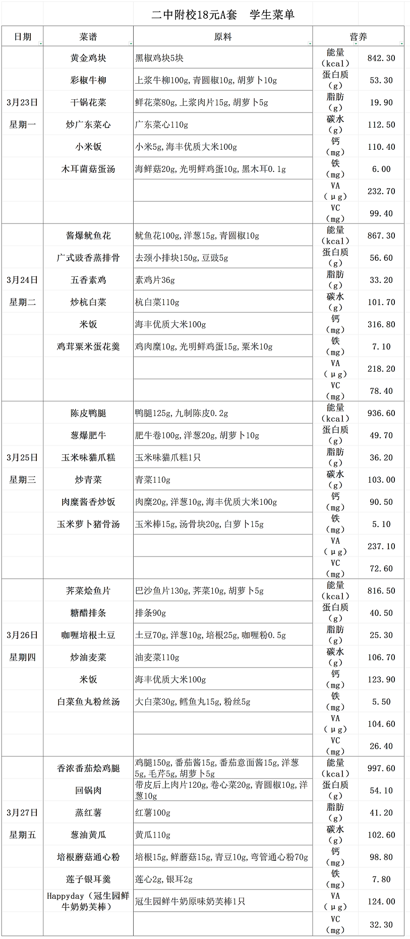 2025学年第二学期第四周菜单