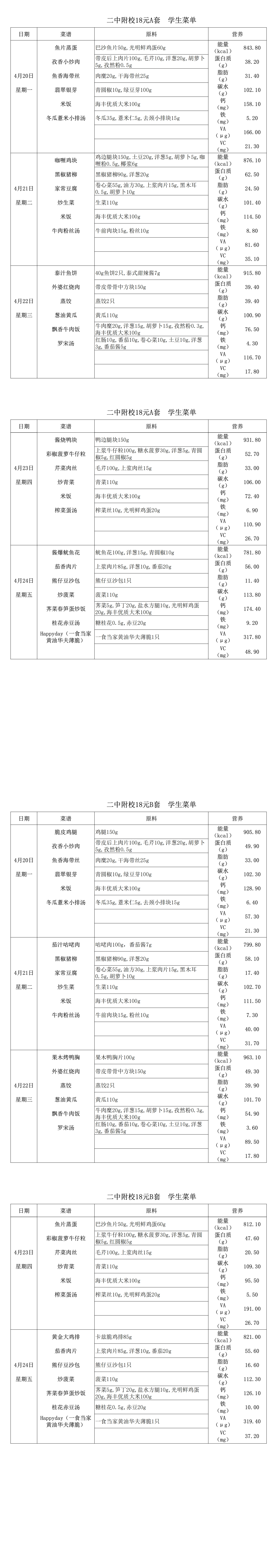 2025学年第二学期第八周菜单